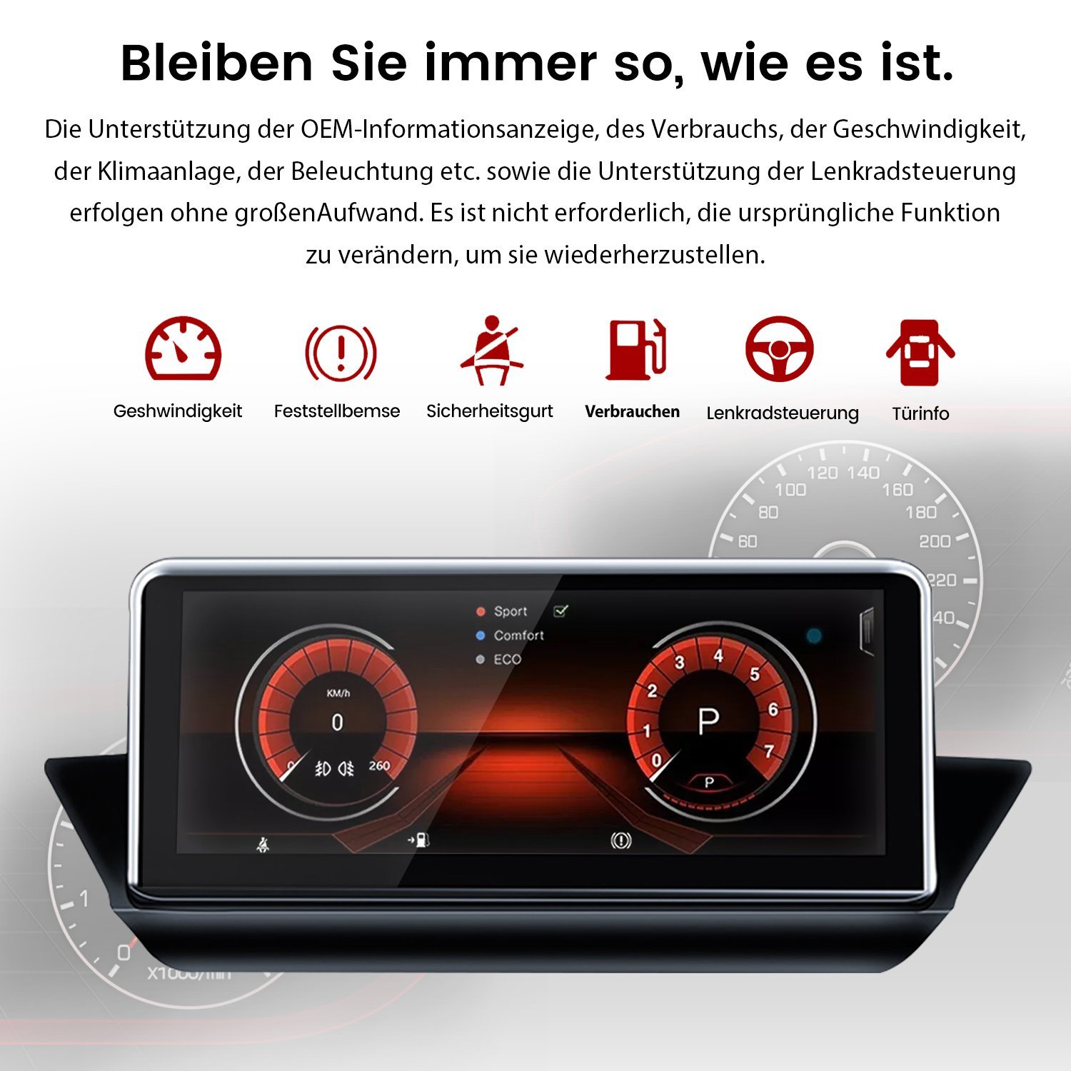 Die Unterstützung der OEM-Informationsanzeige, des Verbrauchs, der Geschwindigkeit, der Navigation, der Klimaanlage, der Beleuchtung etc.