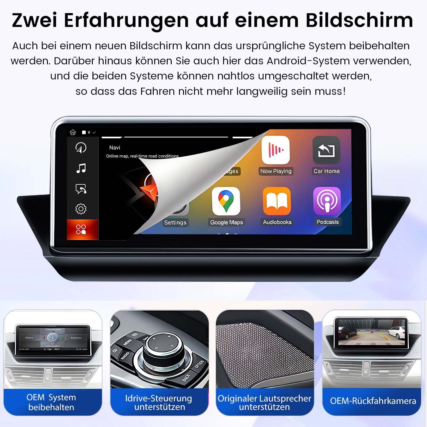 Android Autoradio für BMW X1 E84 Ohne original Display mit 10.25″Display, Carplay, Bluetooth, Navigation, OEM-Funktionen & 4G LTE. Plug & Play Upgrade.