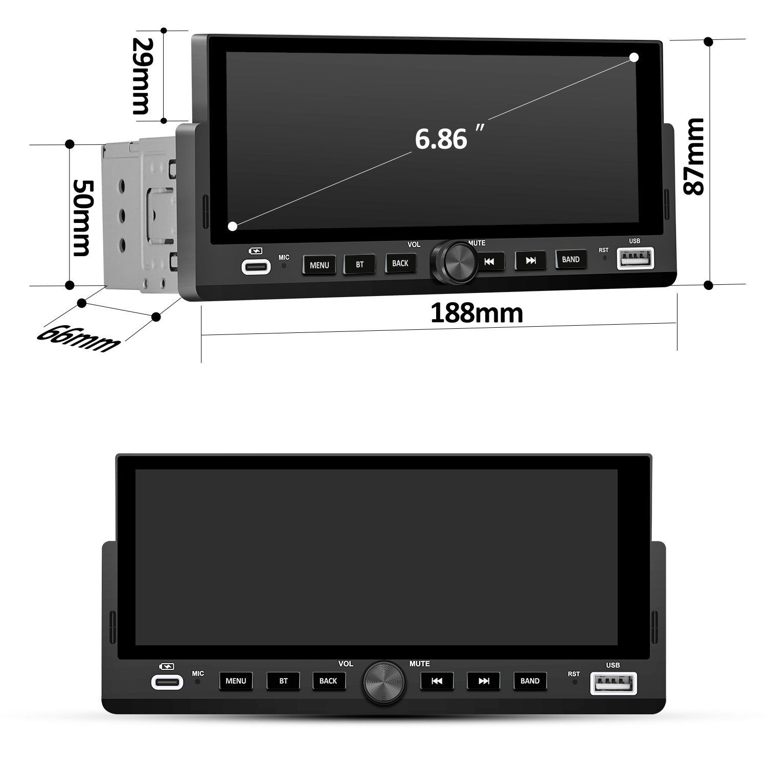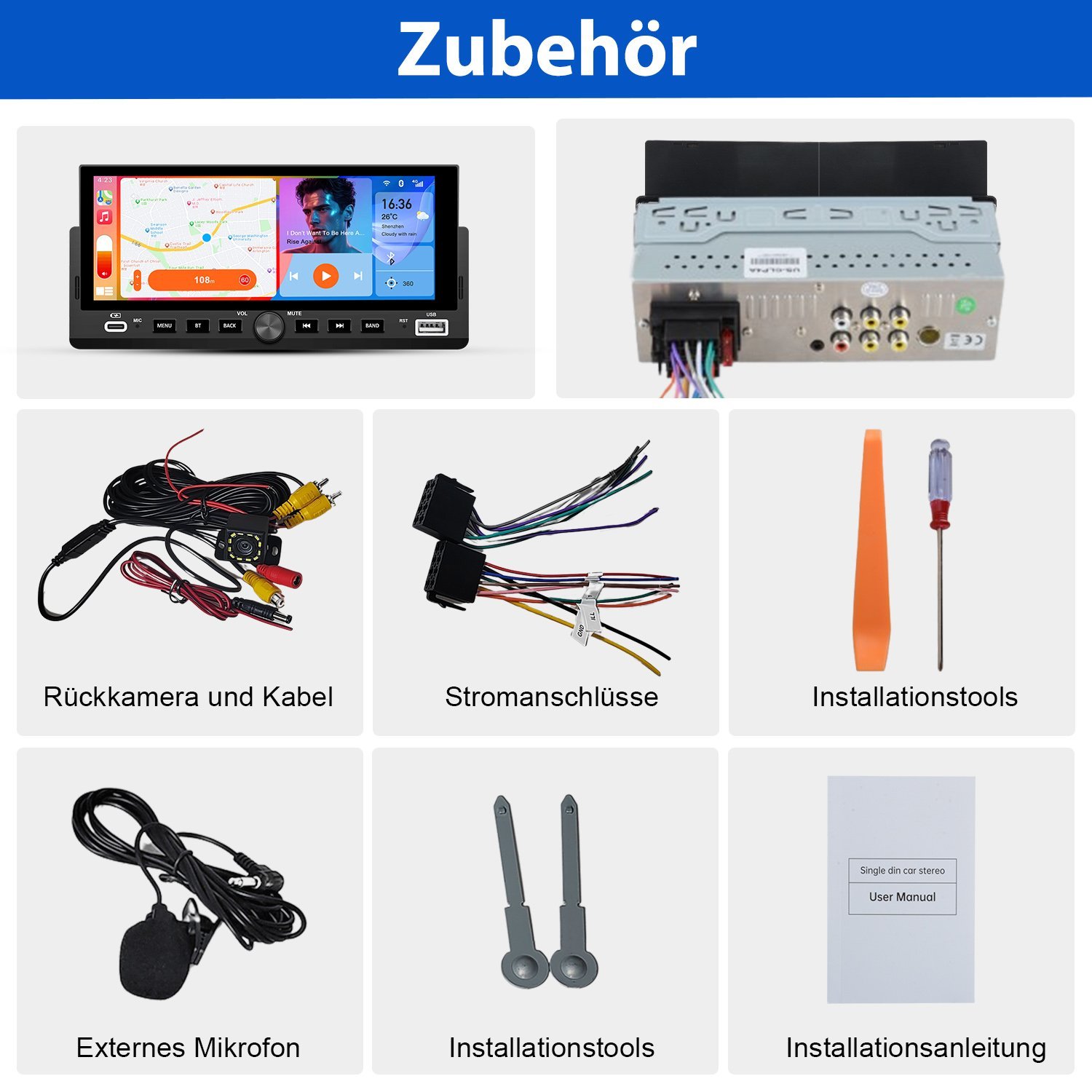 6,8-Zoll Apple CarPlay & Android Auto HD-Display mit Rückfahrkamera, Touchscreen, Bluetooth 5.0