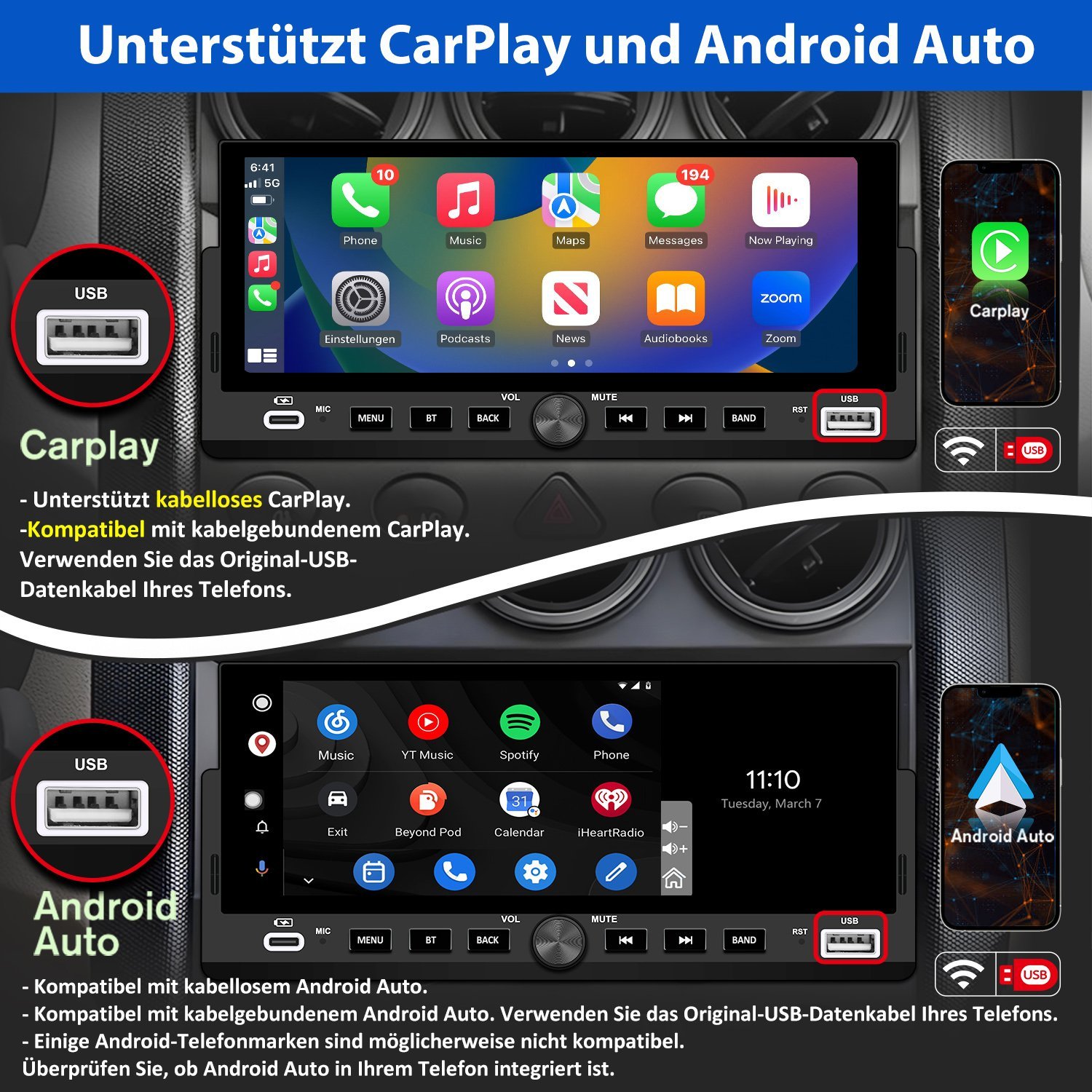 – Carplay & AndroidAuto: Ja (ohne zusätzlichen Adapter)