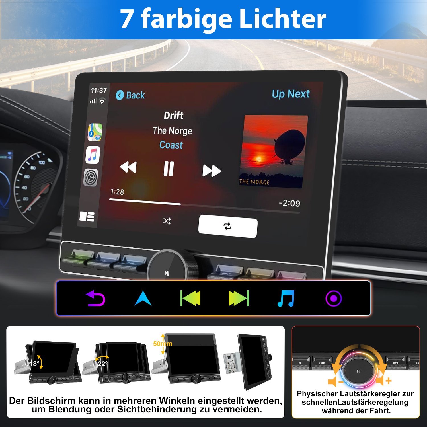 Spiegeln Sie Apps wie Navigation, Musik oder Nachrichten direkt vom Smartphone auf den Bildschirm. Die Sprachsteuerung ermöglicht eine sichere Bedienung während der Fahrt – ohne Ablenkung.
